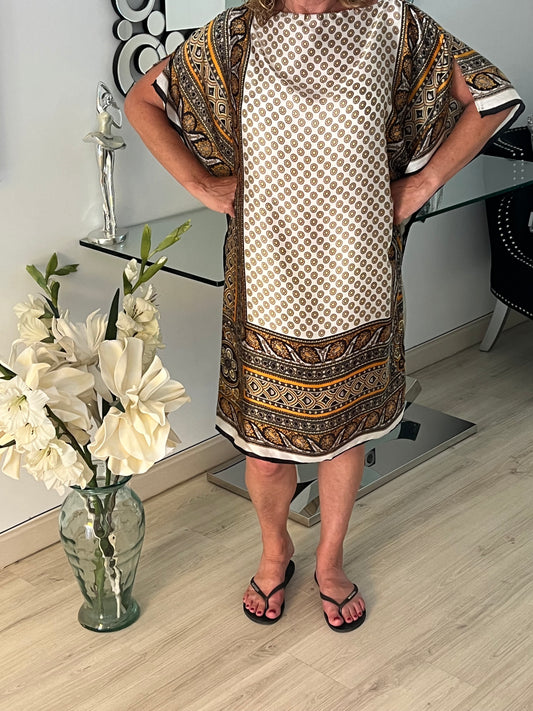 Boho Style Cream & Gold Dress