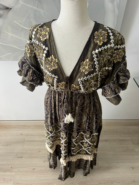 Boho Khaki Dress with Sparkle Detail
