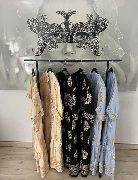 Greek Style Dress with Gold Embroidery